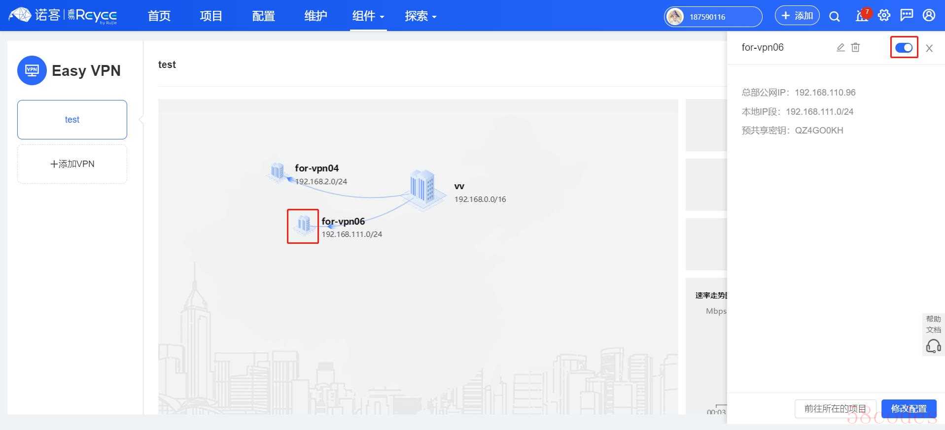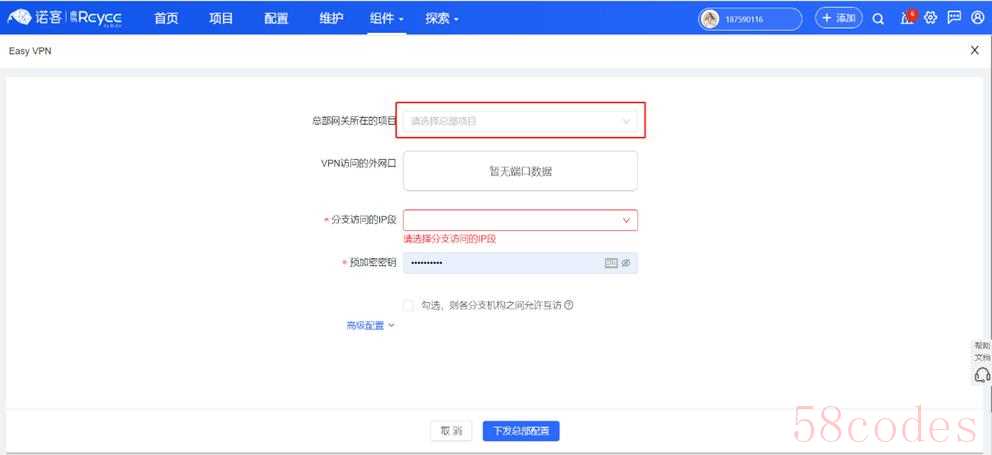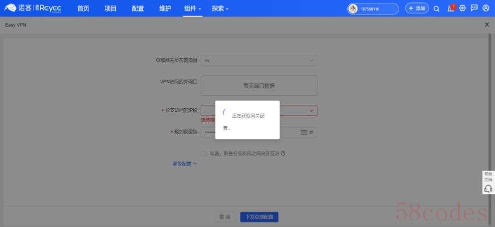 (3) 配置总部网关的VPN:选择总部网关所在的项目,等待获取网关配置,约1分钟左右。(等待时间因网络状况的不同可能有所差异)。图2-4 选择总部网关所在的项目