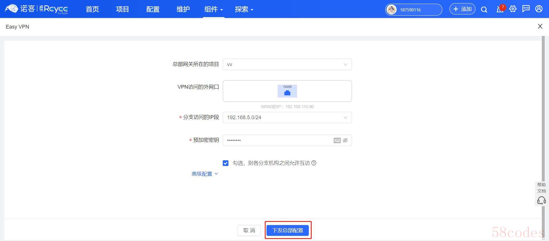 (7) 点击<下发总部配置>,完成总部VPN配置。图2-9 点击<下发总配置>