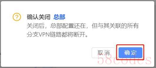 图2-28 点击<确认>,删除该分支机构的VPN配置
