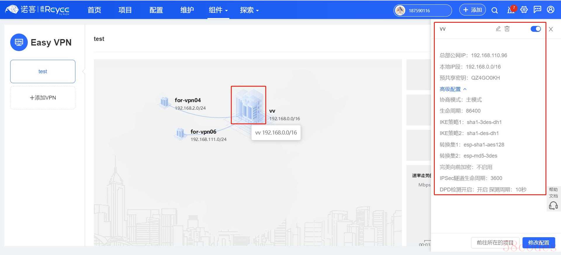 (1) 点击总部网络,可查看总部VPN配置详情。图2-17 总部VPN配置详情