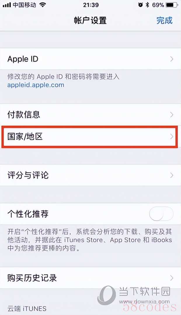 3. 点击“国家/地区”选项,进入后点击“更改国家/地区”;