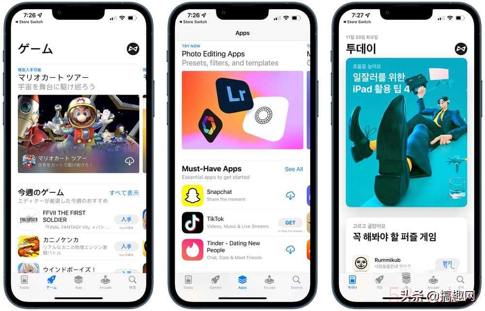 至于 “Store Switch”App Store 跨区工具,主要是能够让我们随意切换各个国家,用来了解其他国家哪几款 App 或游戏排行榜,以及可以了解每个国家 App Store 的 Today 、时下热门、专题故事等。