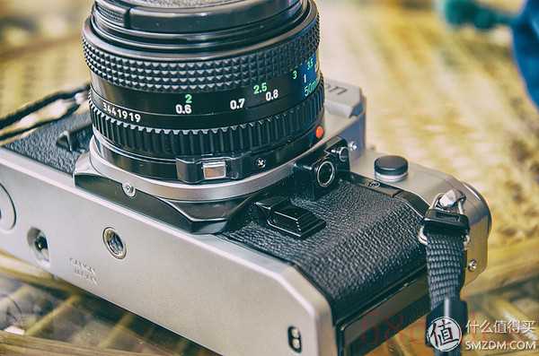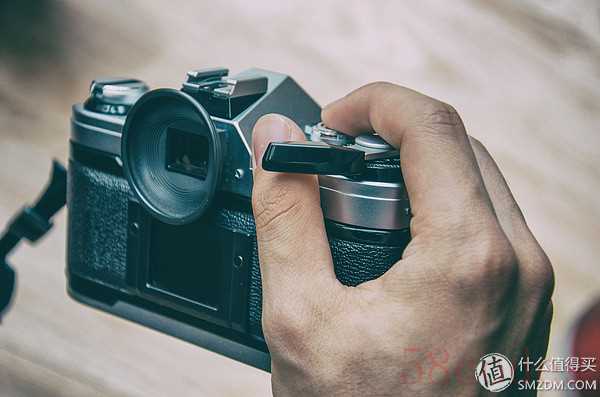▲其实AE-1体积不算大,对于汉子来说,在拍摄过程中单手握持基本不成问题,大拇指可以像图上那样放在拨开的卷片杆上边,完成对焦后,单手可以完成后续拍摄,但是可能对于妹子来说,AE-1还是会有点点重的。