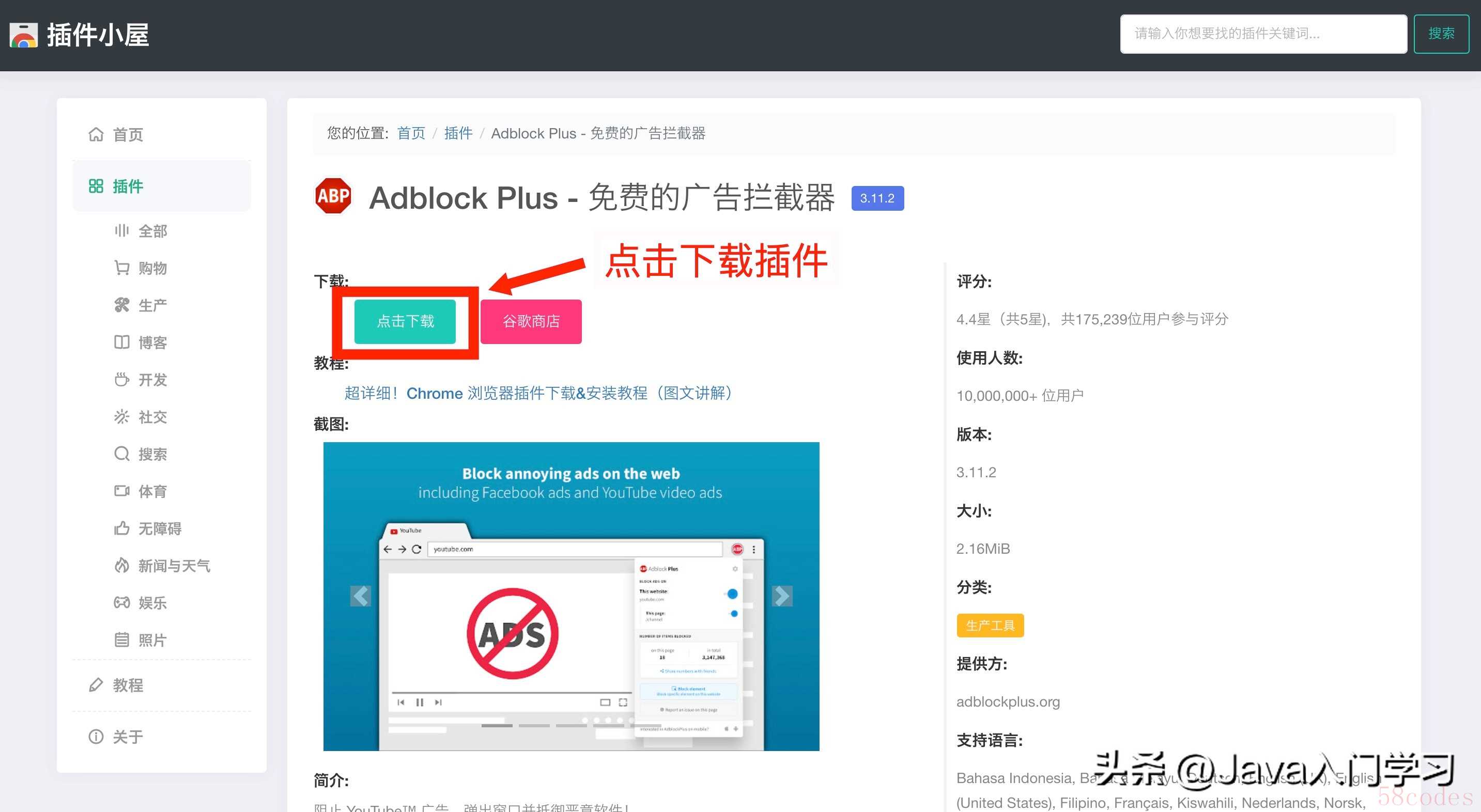 点击进入插件详情页后,再点击下载该插件: