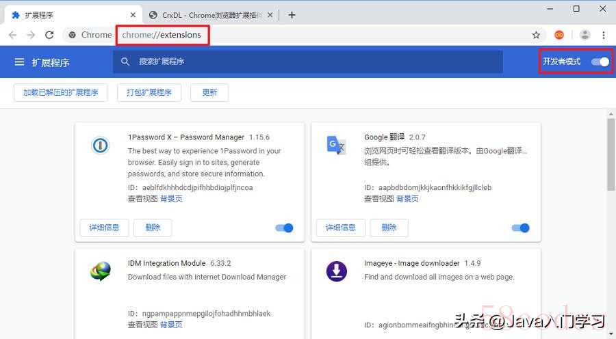 注意: 不勾选开发者模式是安装不上插件的。