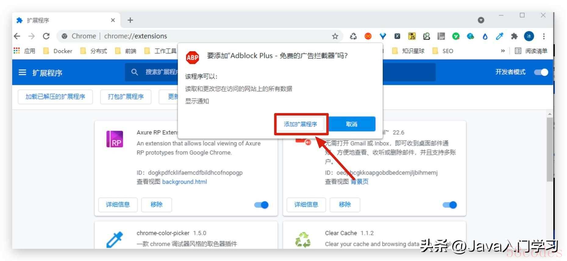 - 一个确认对话框会弹出,询问你是否要添加该扩展。点击“添加扩展”按钮。