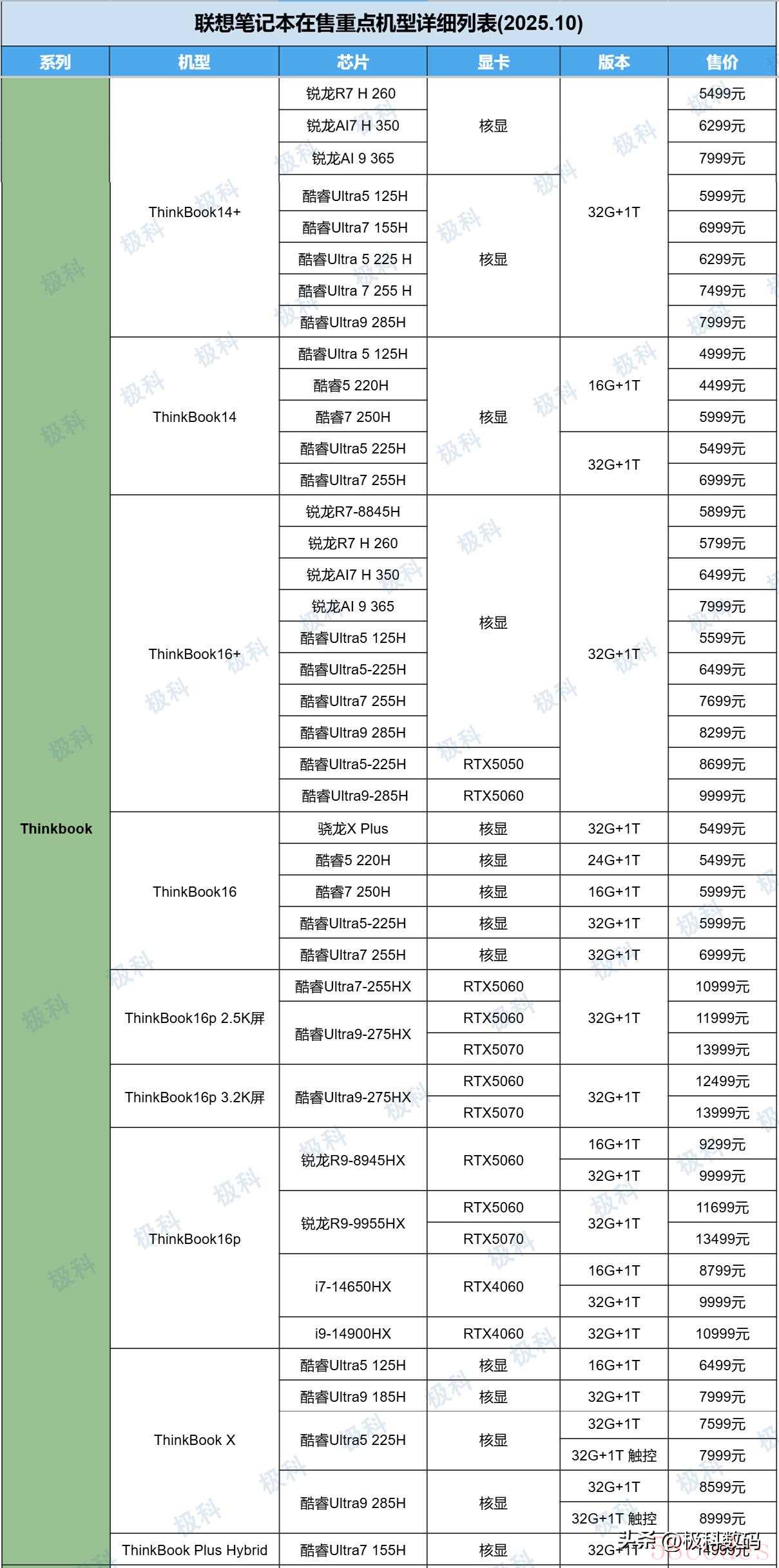 联想ThinkBook的主要在售机型,虽然看起来比较多,但梳理后如何选择则非常清晰。