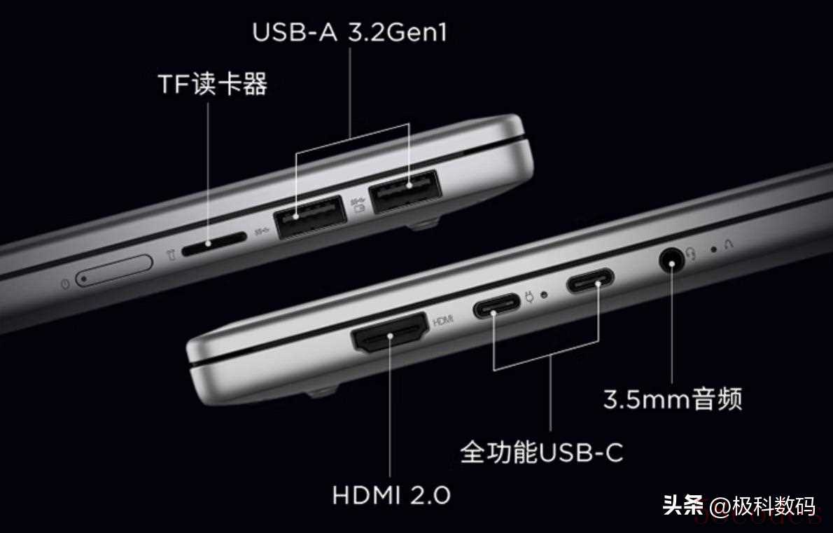 2x全功能USB-C,2xUSB-A 3.2Gen1,1xTF读卡器,1xHDMI 2.0,1x3.5mm音频。