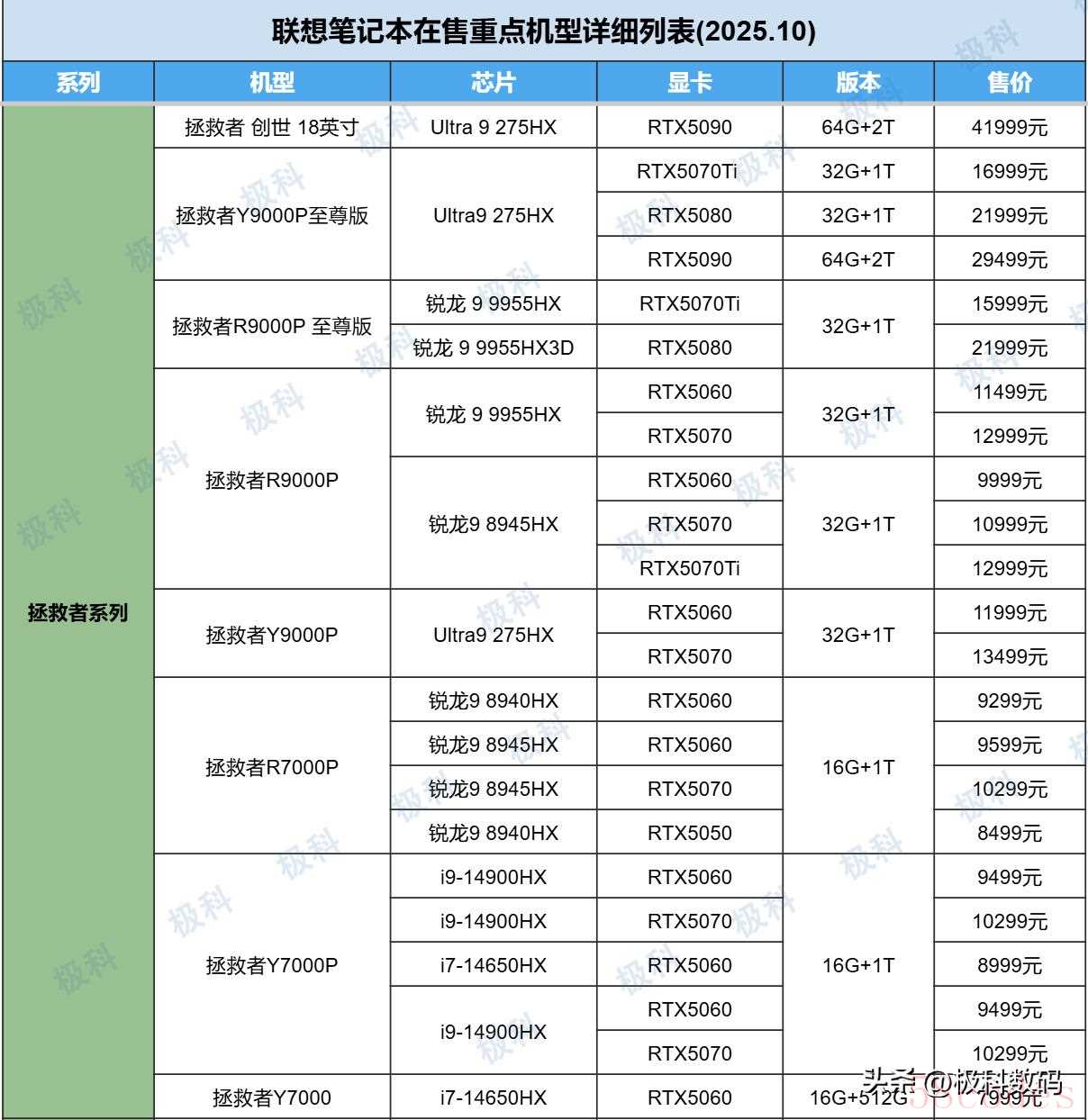 拯救者系列又主要分为:Y7000、R7000、Y9000、R9000、拯救者创世