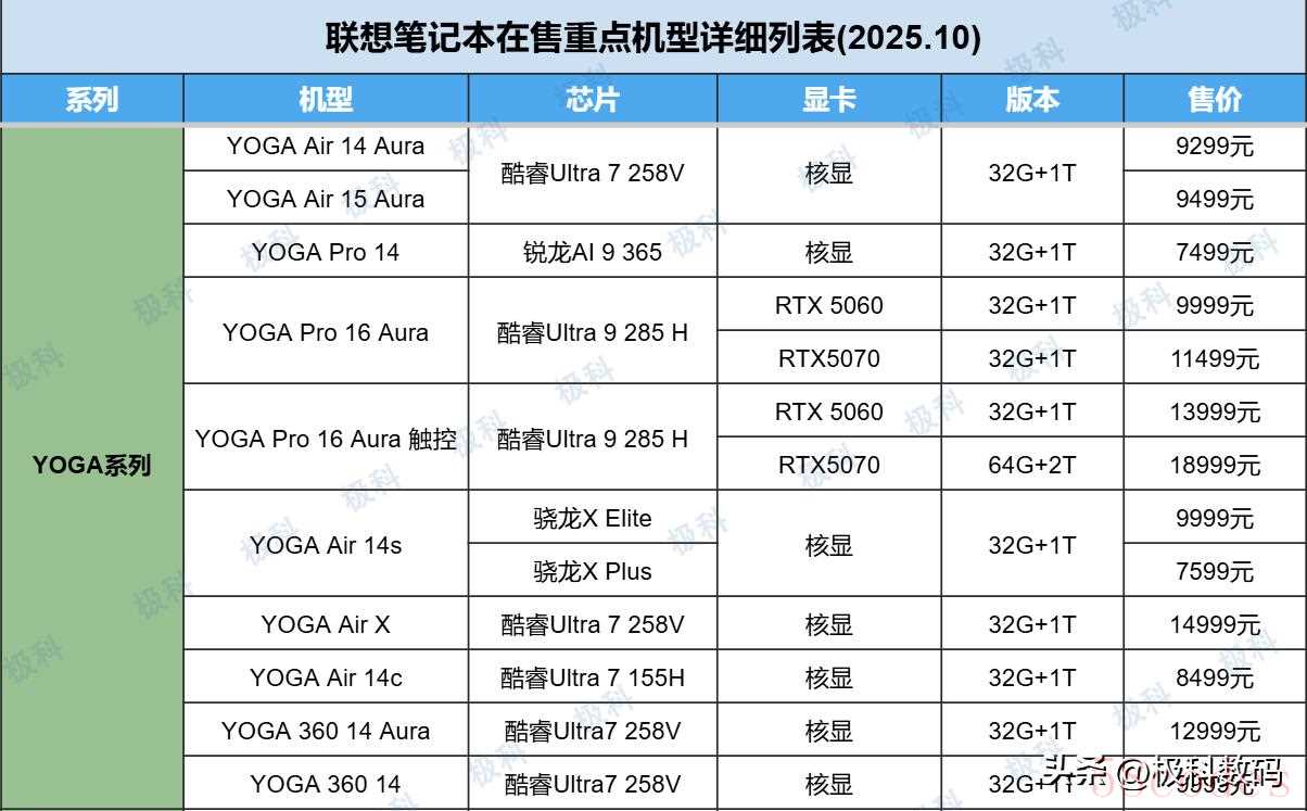 1、联想YOGA Air 14 Aura 2025 酷睿Ultra7 258V 2.8K高刷触控OLED(32GB+1TB)9279元