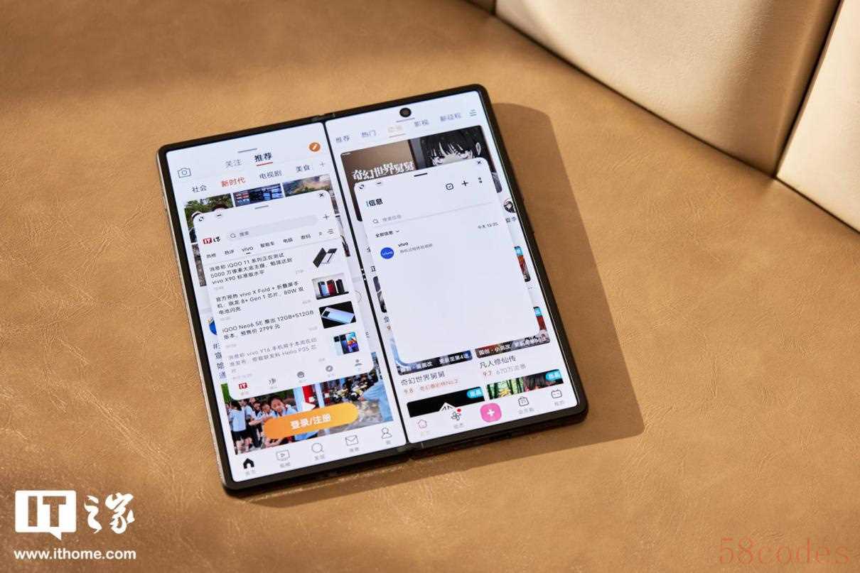 其他方面,vivo X Fold+ 还针对金融类应用进行了大屏优化,以及针对生产力打造的琥珀扫描、量子套件、原子笔记等,还支持设备互联,比如可以和 vivo Pad 平板搭配,实现内容跨屏同步、通话接力等。