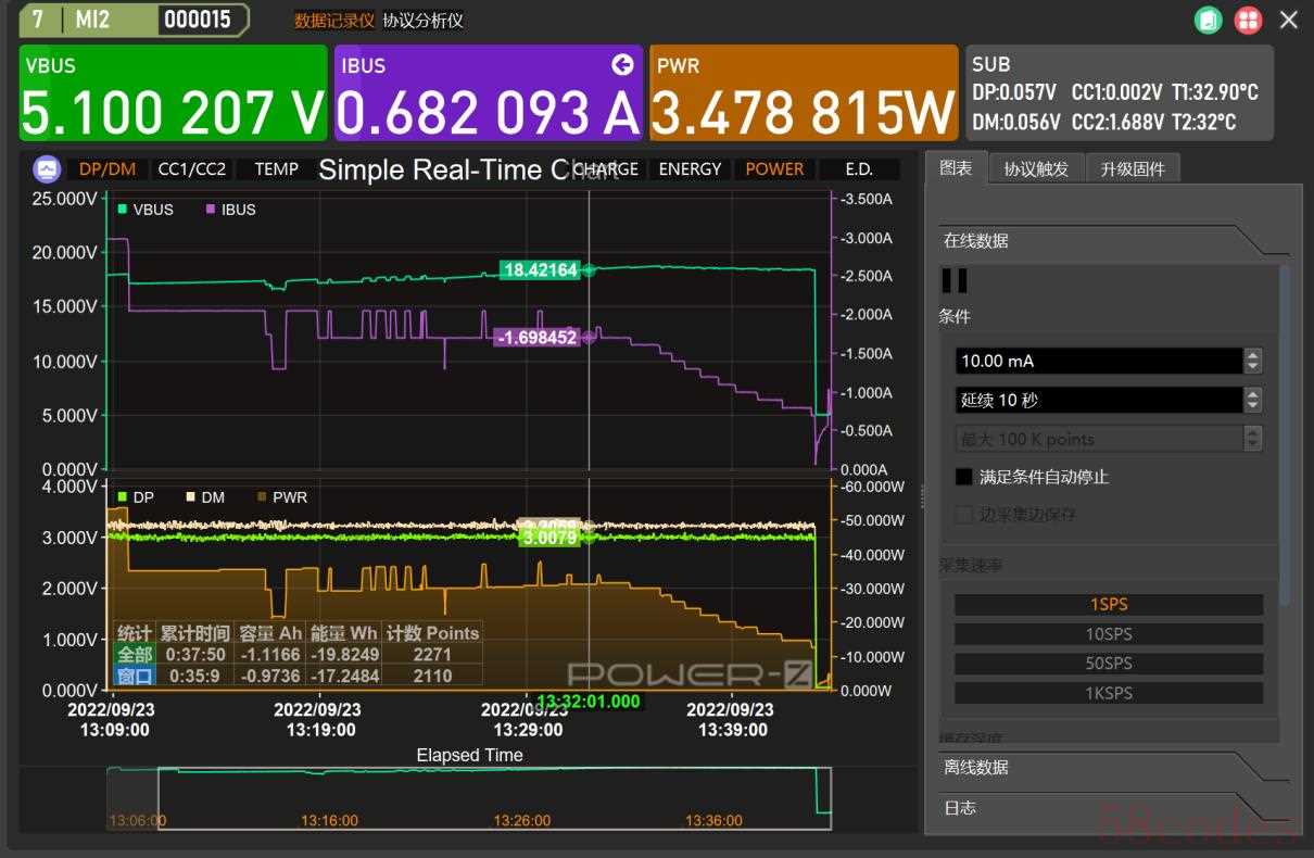再来看看功耗表现,30 分钟游戏,vivo X Fold+ 的功耗达到了 4.94W(2470mW*2)。