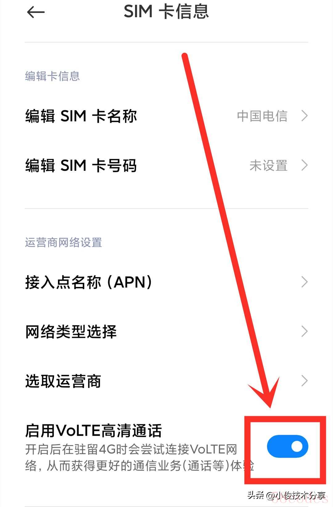 接着找到自己的手机卡点进去,然后把下面的【启用VoLTE】开关关掉就可以了