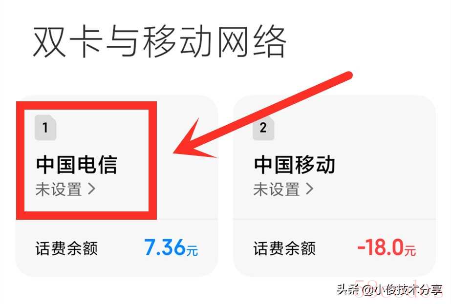 接着就可以看到我们手机上安装的手机卡,比如说我手机安装了2张卡,那么依次点击这个手机卡!