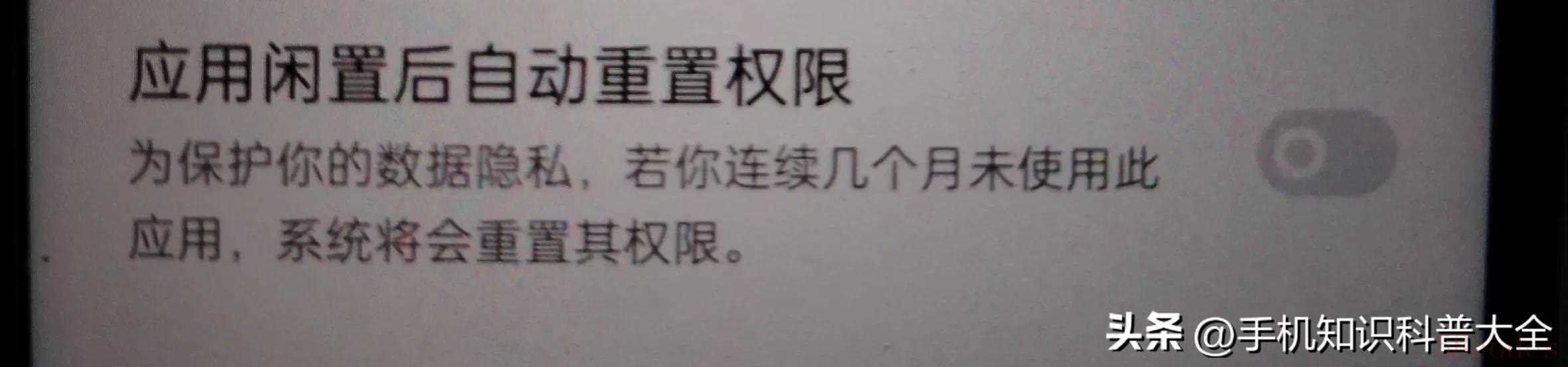 这些常用的权限全部勾选为允许,然后往上滑可以看到有一个应用重置后自动重置权限,这个开关我们千万不能打开它,那么打开以后系统就会为保护你的数据隐私,长时间不用的时候将重置其权限,系统会明确告诉我们:到期后被重置的权限有存储权限、位置权限、相机和麦克风都将自动关闭,这就是为什么高德地图几天没用自动关闭权限的原因。