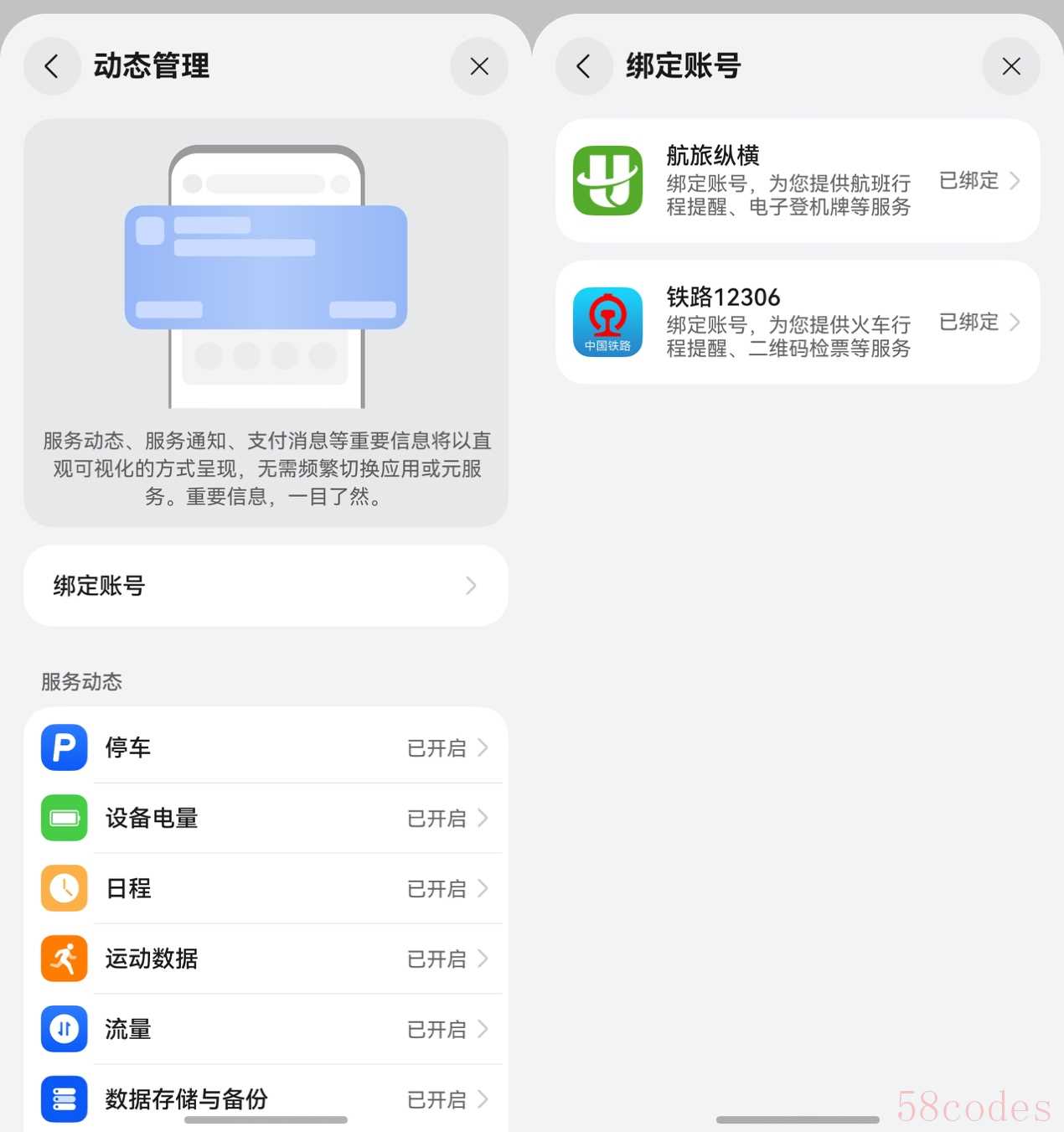 比如国庆坐高铁,提前关联12306账号后,负一屏会直接显示车次、发车时间等关键信息,车次状态有变化时还会及时推送提醒,助你合理规划行程。乘坐飞机或自驾出游,关联航旅纵横账号或打开停车动态管理开关,也能让乘机值机、停车等环节变得高效。