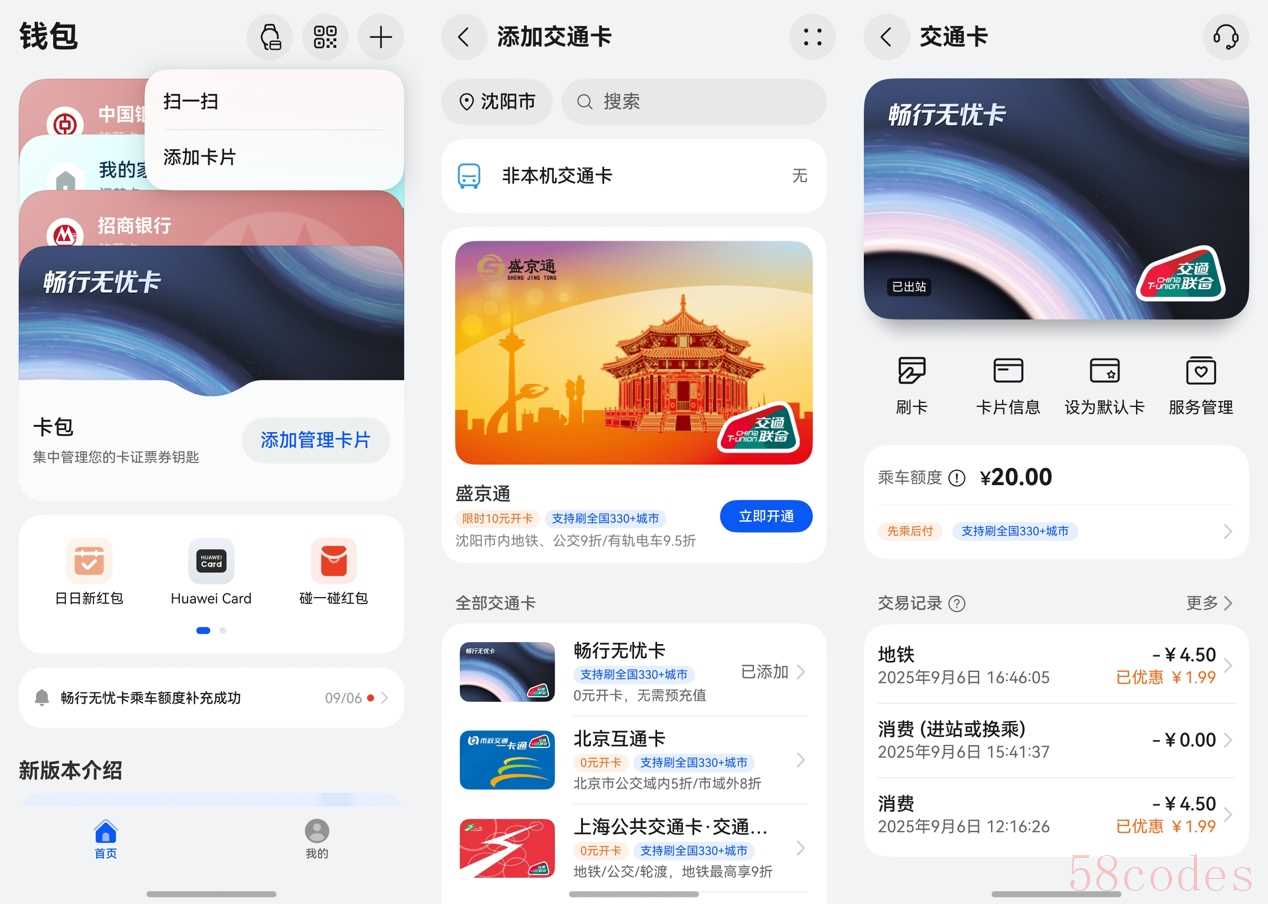 开通“畅行无忧卡”也很简单,三步就能完成:打开钱包APP,点击右上角+号,在添加卡片里选择交通卡,找到畅行无忧卡后点击立即开通,按提示完成激活,就能享受这些便捷体验。