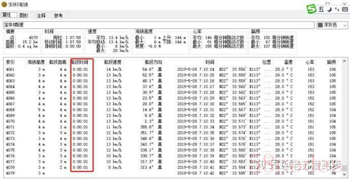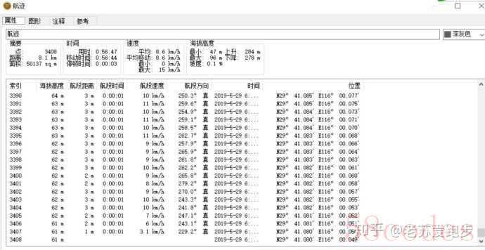 轨迹点总数9069,记录间隔请看“航段时间”,因为是智能模式,间隔时间没有规律性,最小间隔1秒,最大间隔十几秒。