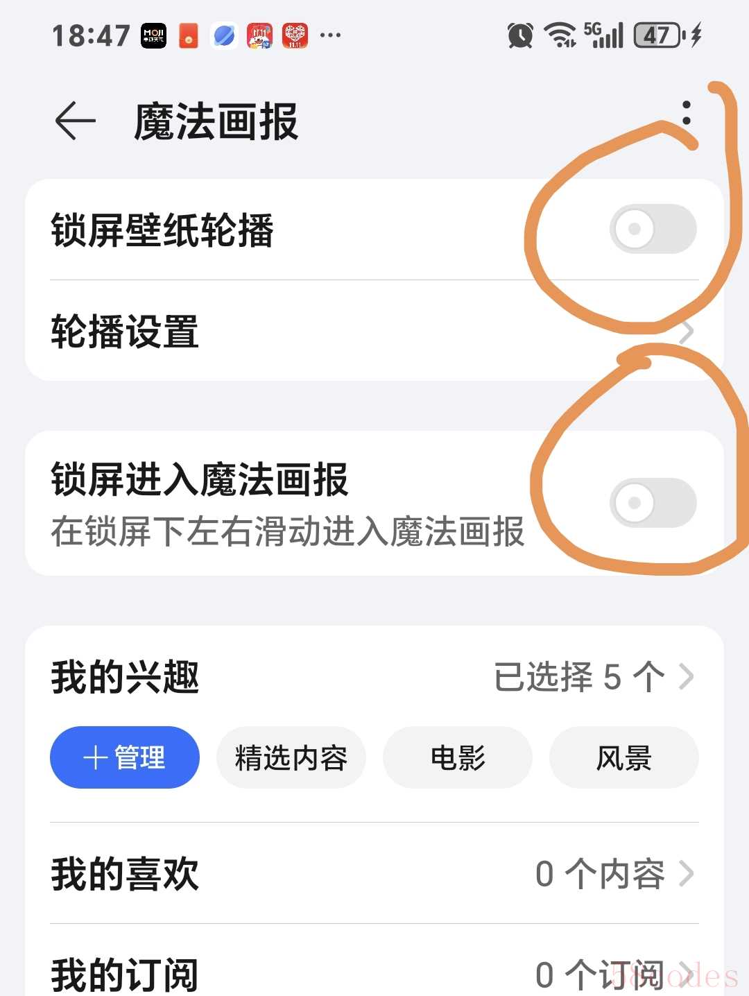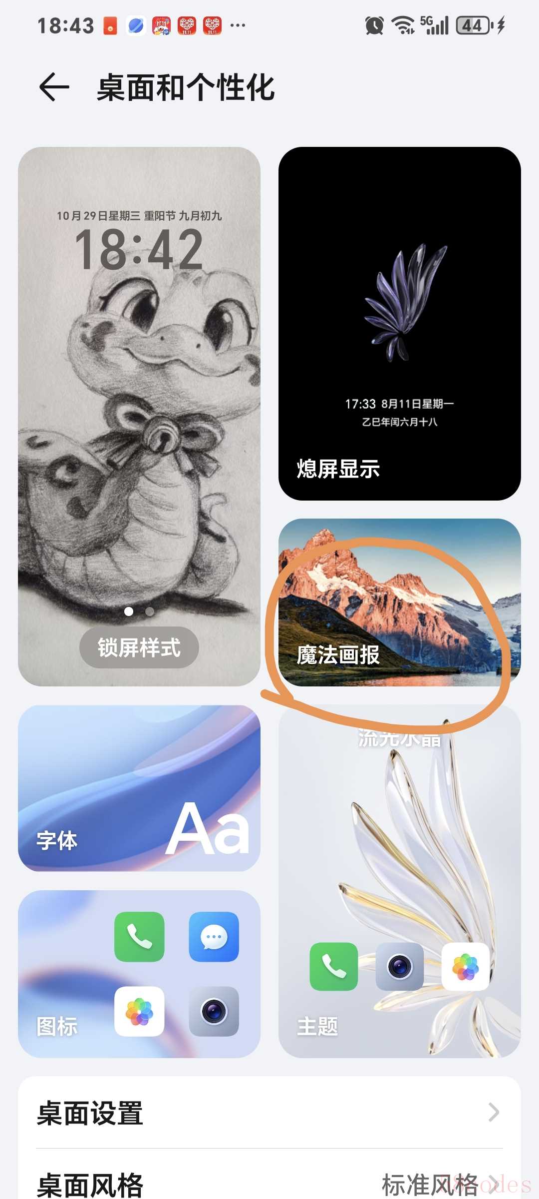 ,这里藏着一个叫“魔法画报”的功能(老机型叫“杂志锁屏”)