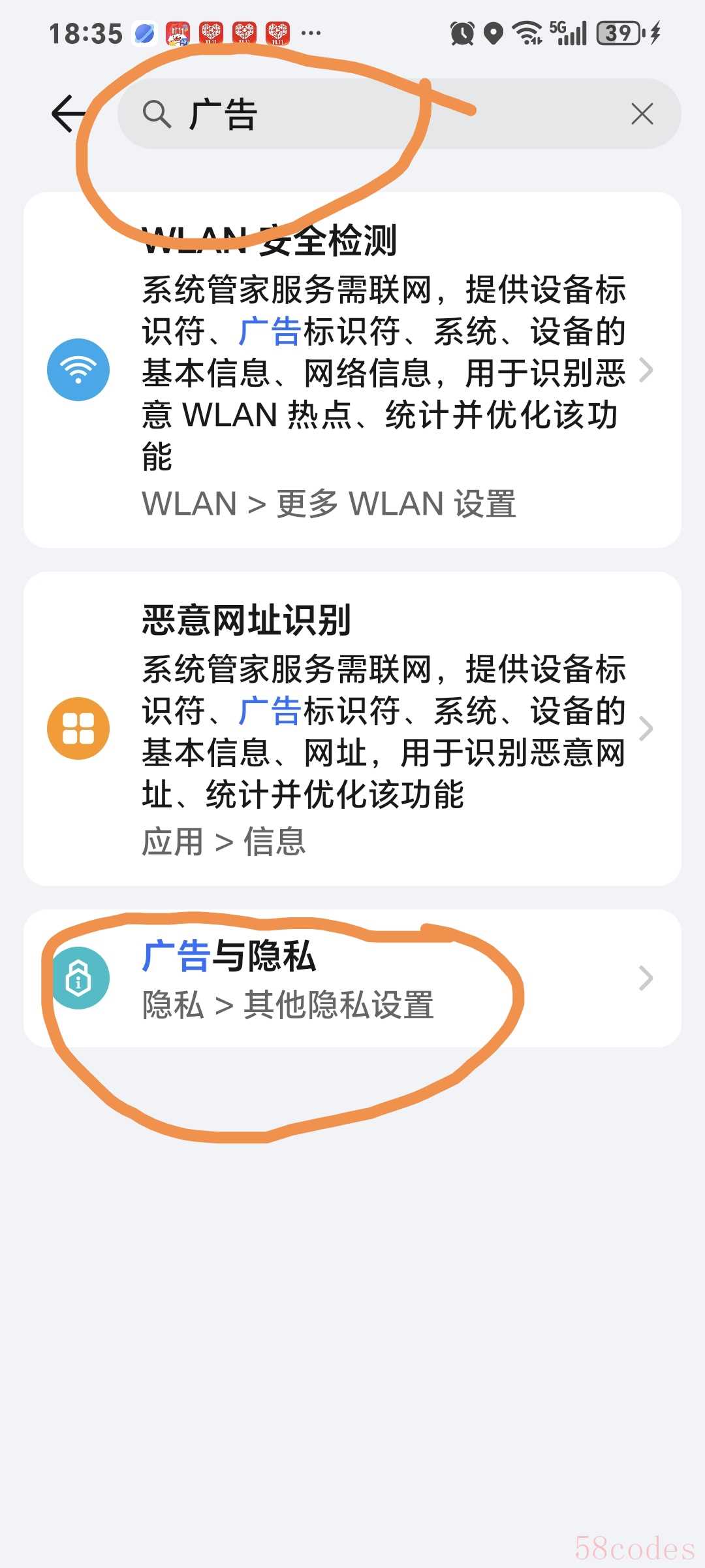 在顶部搜索栏直接搜“广告”两个字,马上会跳出“广告与隐私”选项。