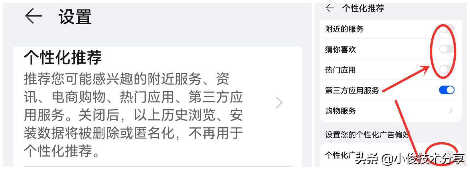 关掉这个个性化推荐开关之后,我们使用手机才不会收到广告推送!