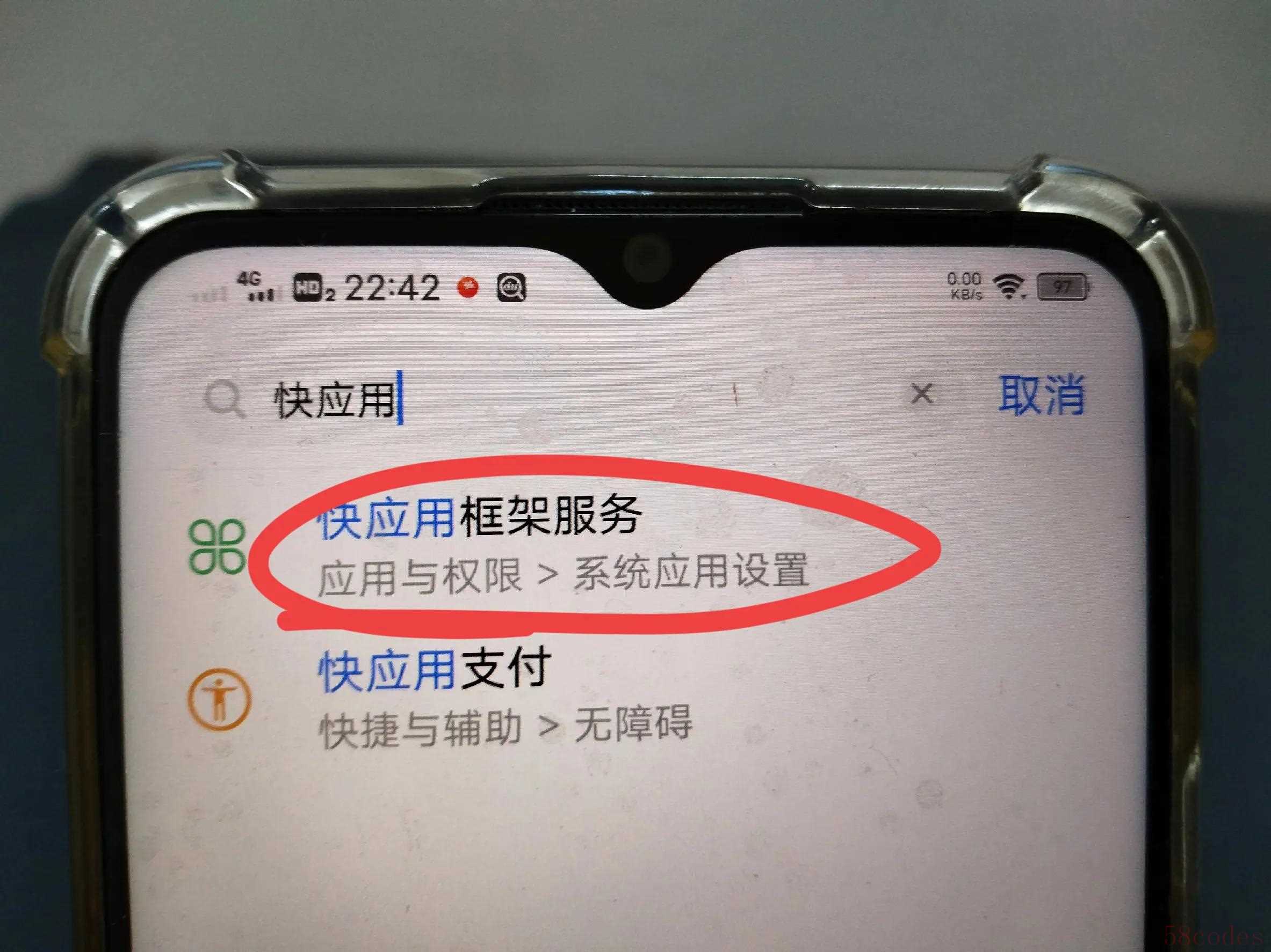 然后点击搜索设置项,在此直接搜索快应用,(如上图所示)