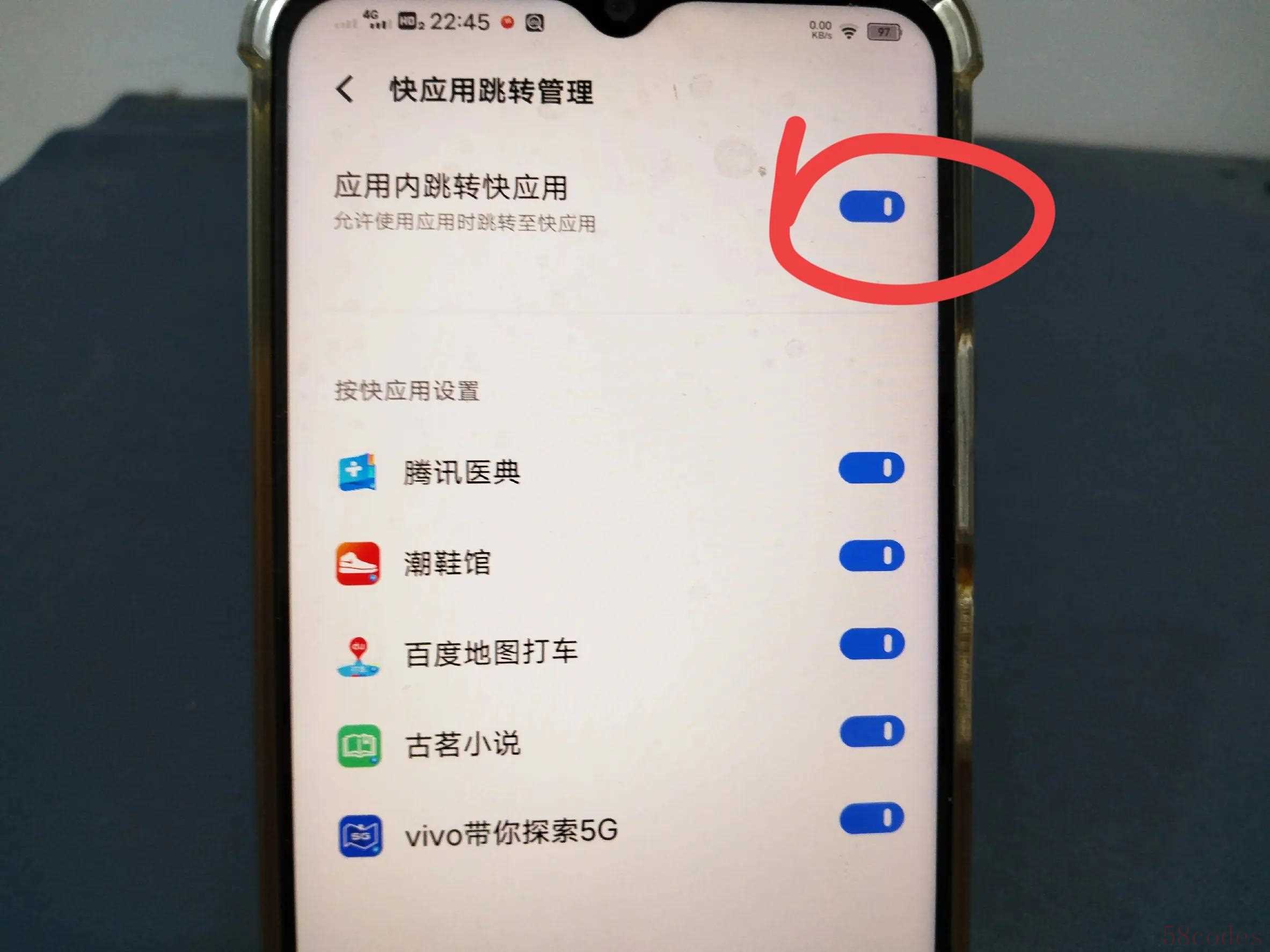 关闭后,使用手机应用时就无法打开任何快应用。(如上图所示)