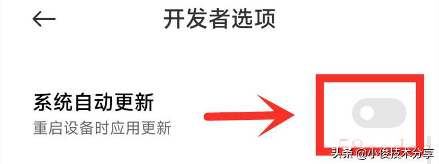 此时就会进入到开发者选项,在开发者中心把【系统自动更新】开关关掉!