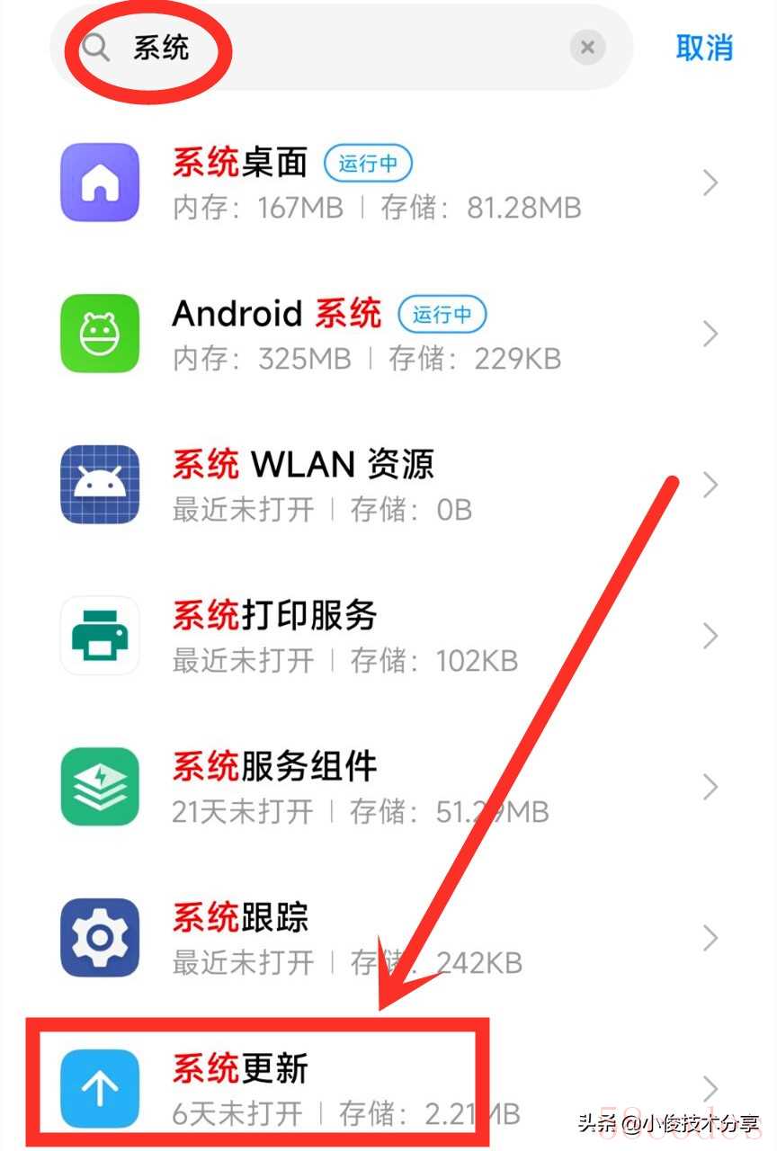 打开应用管理页面,然后在搜索栏输入【系统更新】