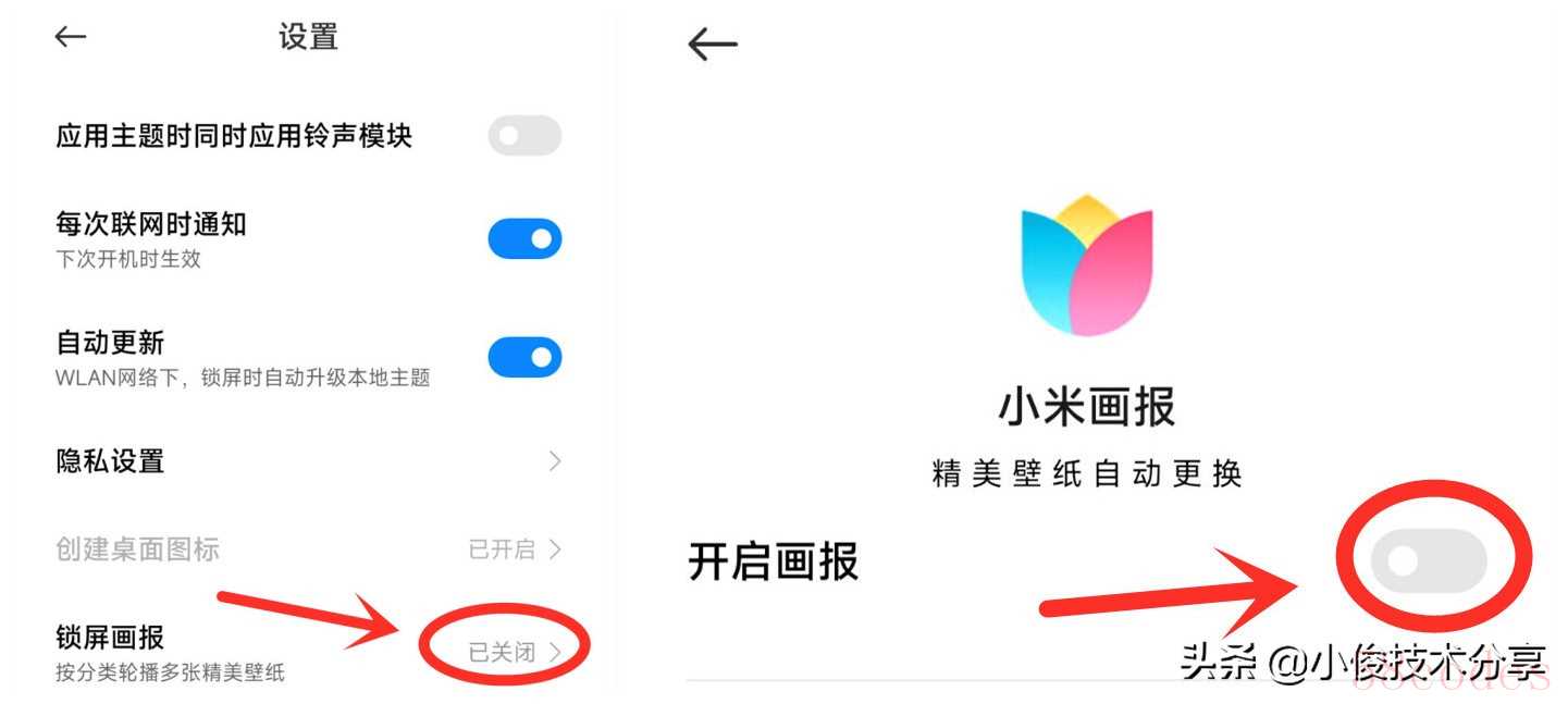 打开手机上的主题壁纸,接着点击【右上角】的设置,接着往下找到【锁屏画报】,将它关闭!