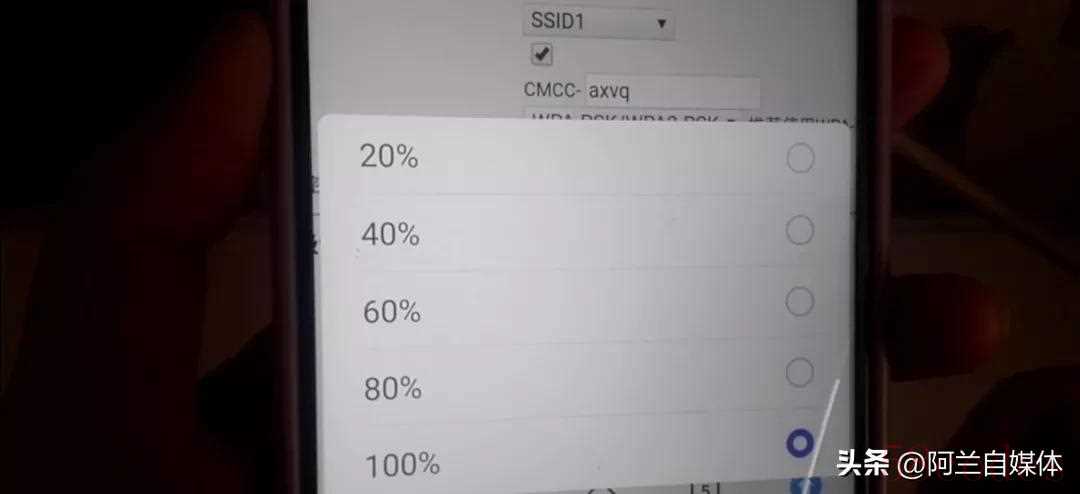 我们把它点开看一下,下方有20%,40%,60%,80%,100%,我们一定要把它选择成100%,这样我们才能提高我们的网速,一般来说它默认的是20%,因此大家一定要记着把这个发送频率一定要调到100%。