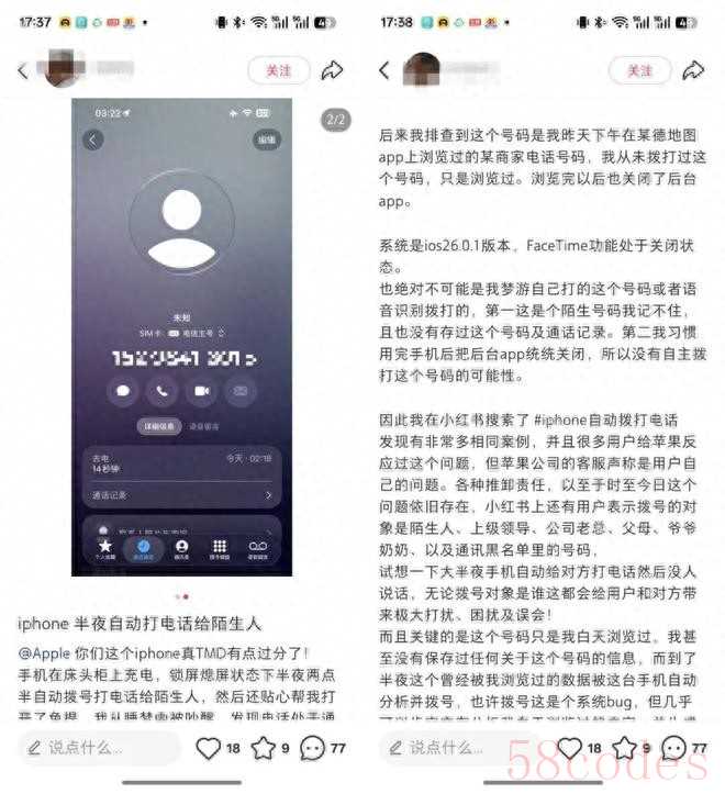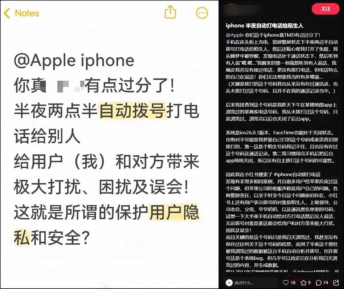 这只是个别案例吗?翻遍苹果社区和社交平台才发现,近一个月已有超200位iPhone用户吐槽类似经历:有人iPhone 14半夜拨通外卖平台,有人iPhone 15自动拨打前任电话,甚至有人一天被“自动拨号”3次。