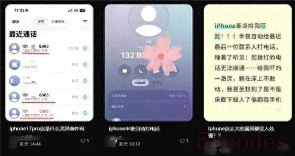 近来不少人在半夜被手机铃声吵醒,这些电话不是闹钟,而是iPhone自己拨出去的,包括iPhone 17 Pro Max、iPhone 15和iPhone 11在内的多个型号都出现过这种情况,时间大多在凌晨两点到四点之间,手机处于锁屏状态,没有人去碰它,却自动拨打陌生号码,对方接不通,系统还提示无法接通,听起来让人心里发毛。