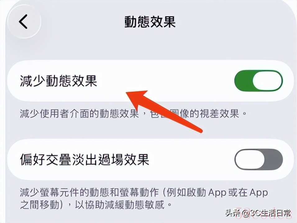 - 打开【减少动态效果】