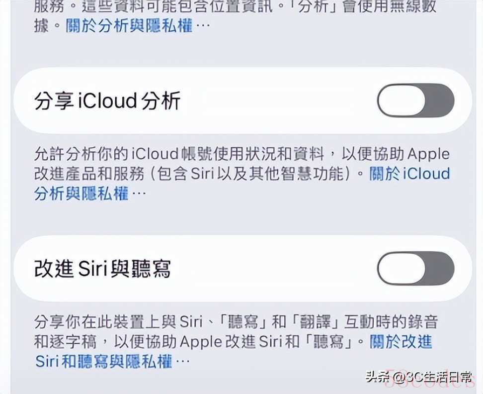 - 关闭【共享 iPhone 分析】