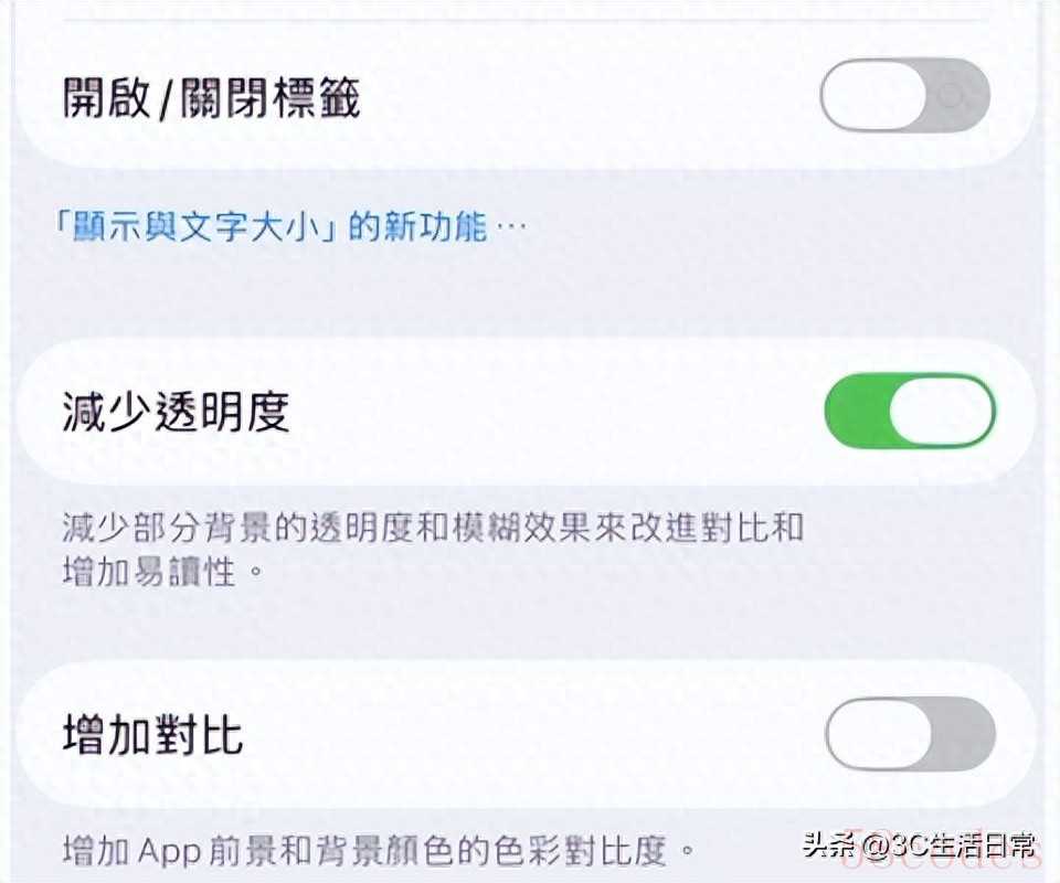 - 打开【减少透明度】