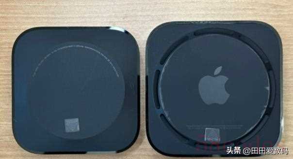 左方的 Apple TV 4K(2022 年高配版)较前代(右)在体积减少了 20%。