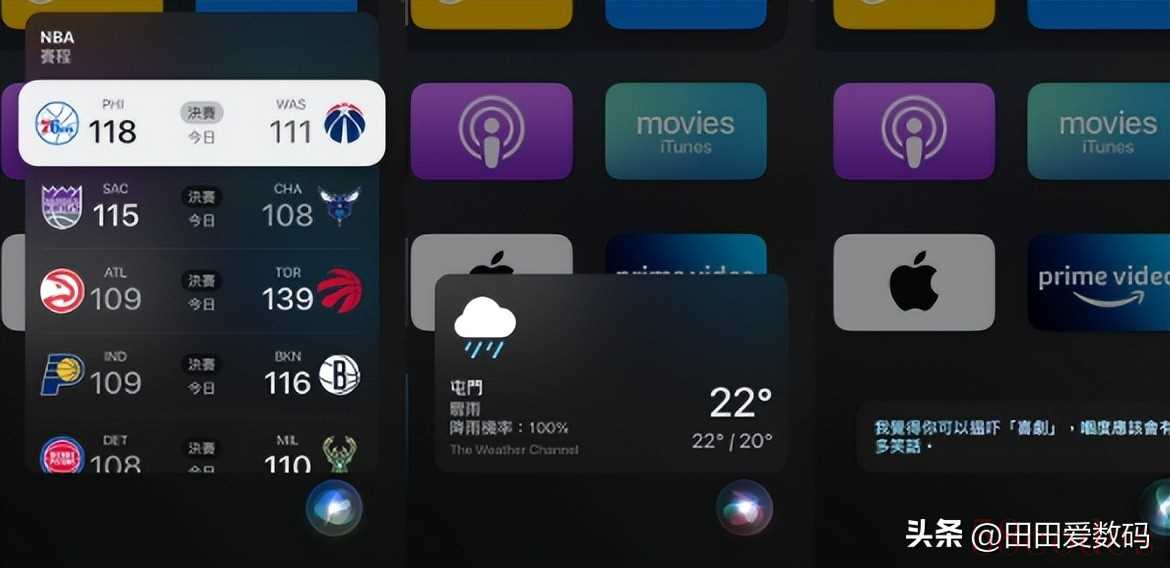 遥控器的侧面有着一颗专属的 Siri 按键,就跟 iPhone 一样可以直接跟 Apple 家的智慧助手用语音查询各种问题,像是天气、最新 NBA 比分,甚至直接找影片也是可以的。