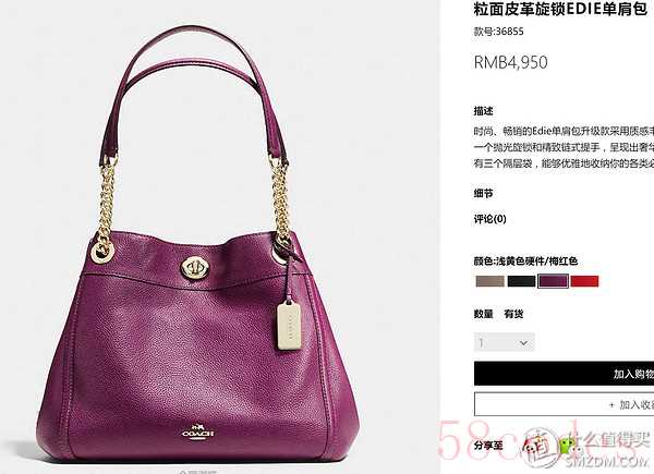 总体来说,对于购买当季货品,楼主个人觉得,国内海淘奢侈品,其实价格可以非常便宜了。举例子,下面一款coach大陆官方在售包包,售价4950RMB, 香港专柜价格5100HKD = 4284RMB,仅仅是八折。
