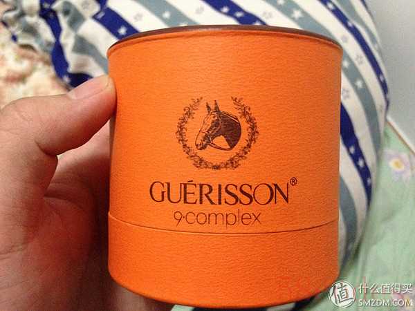 这张是我买的假货,盒子我给扔了,也是橙色,只是图案不一样。注意区别,英文字不一样,不是9 complex。马头胖一些也没有美美的花圈带,假货。