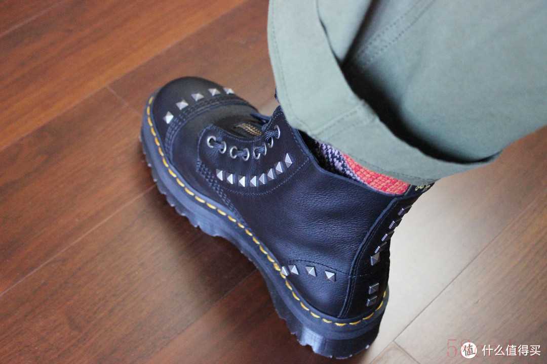 产品淘自ASOS,是品牌与电商平台之间的联名合作款,因此不像随处可见的1460,至少在撞鞋率这块上有所保障。产品最大的特点是遍布鞋身的铆钉,搭配酷黑的皮革,在视觉效果上相当punk,正式场合我真不敢随便穿它出去,不过每当夜晚降临,它就会化作你唱K蹦迪,遛街耍疯的利器。值得一提的是,厚底设计还能有效提升身高与气场。