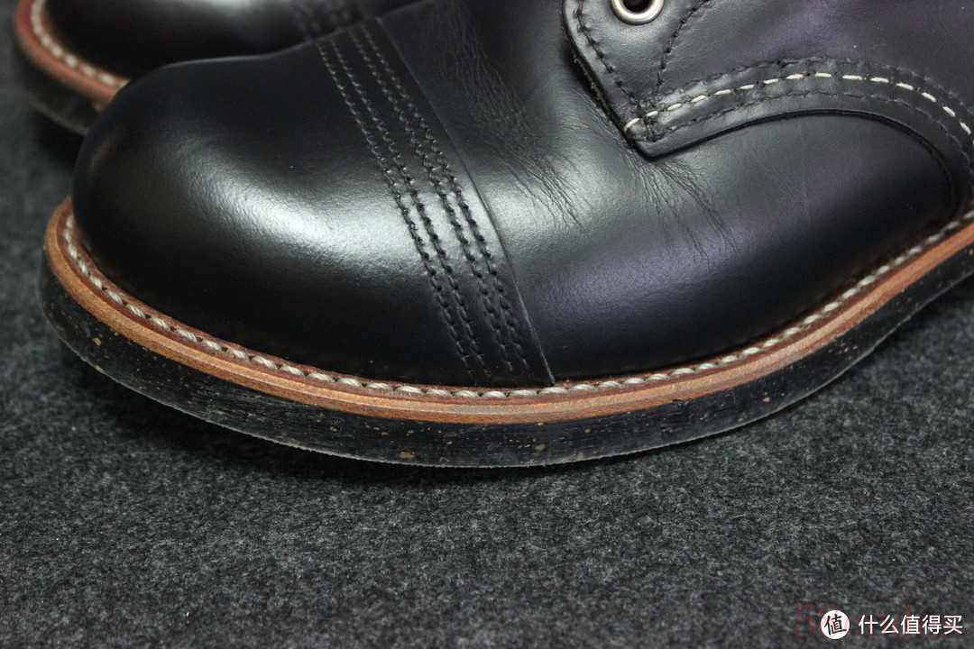 皮革上各种划痕与印记,反倒是尽显美式粗犷。普普通通的固特异沿条缝,粗犷、结实、耐用,经得起岁月的洗礼。