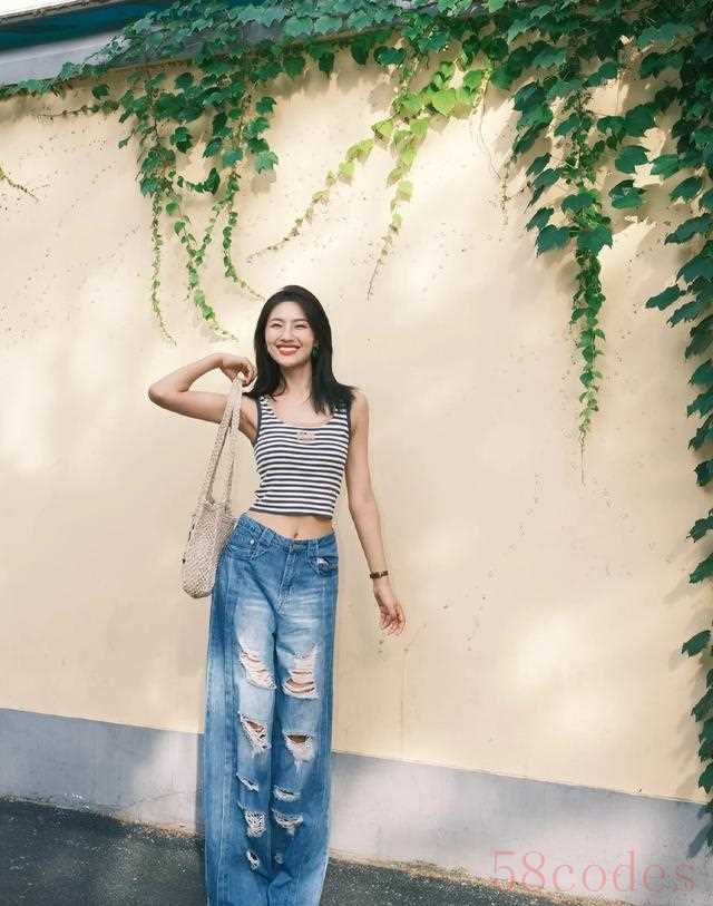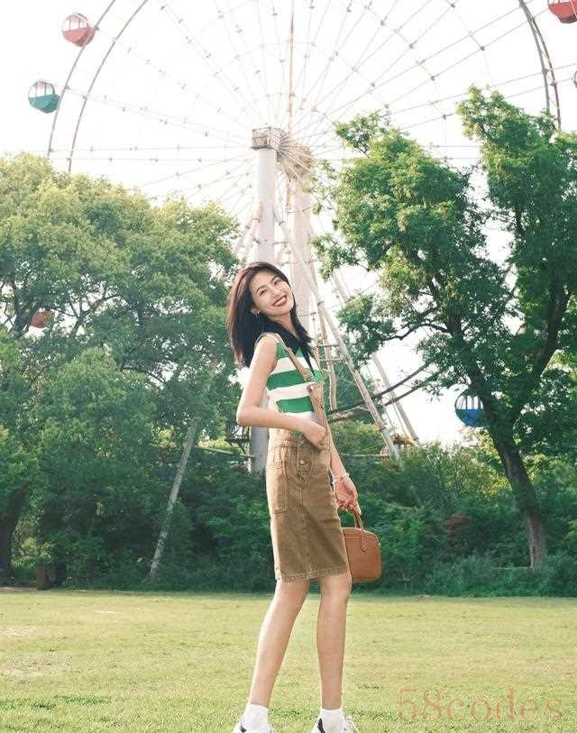 道具更是作弊器,共享单车横过来,人站踏板外侧,车座天然拉高腰线;便利店推车更香,手扶栏杆轻轻一蹬,肩胛骨打开,背沟显出来,谁还看得出真实身高。