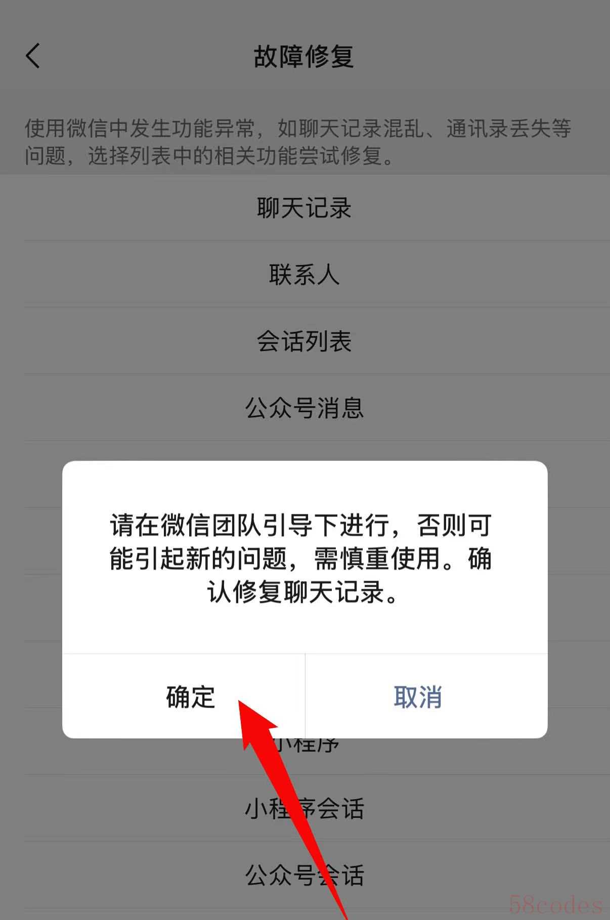4. 此时会弹出提示“修复可能导致聊天记录暂时性消失,建议先备份”,确认没问题后点击「确认修复」,等待几分钟,微信会自动重启,重启后就能查看是否恢复成功。