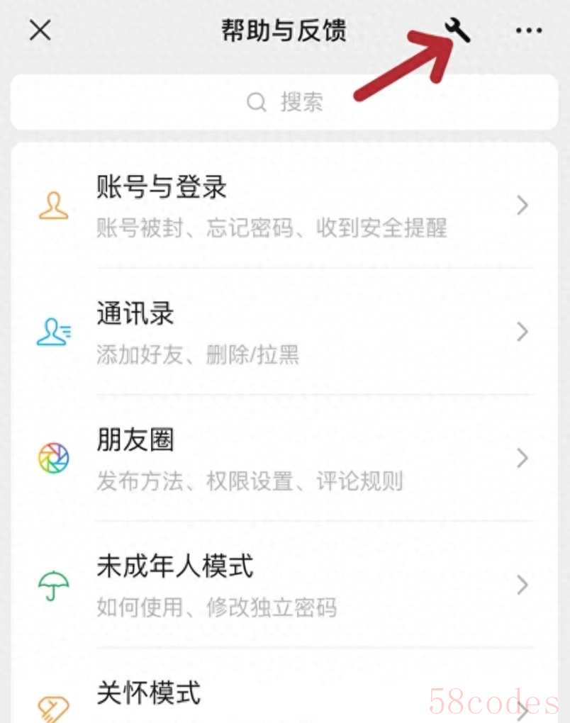 2. 在设置里找到「帮助与反馈」,点击右上角的“小扳手”图标(故障修复入口);