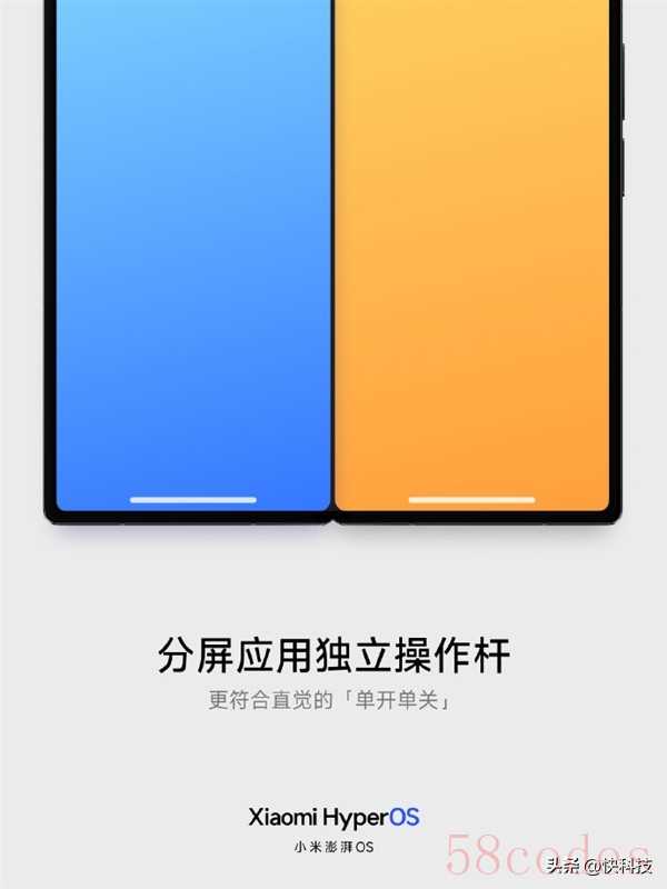 以往折叠屏手机左右双屏显示时会绑定,很难单独切换,现在小米澎湃OS为折叠屏手机启用了分屏应用独立操作杆,可以单开单关。