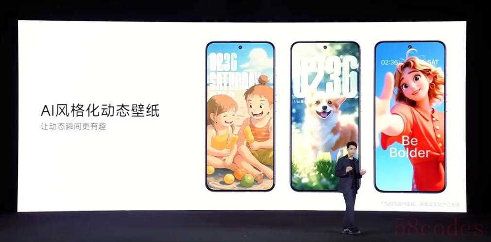 锁屏方面,澎湃 OS 3 支持 AI 生成动态壁纸,可选择多种风格化的动态壁纸;带来全新居中大时钟锁屏,生成景深等也更加方便。