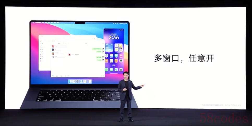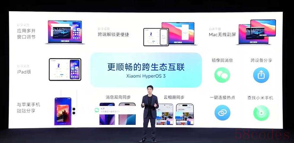 对于小米手机和 MacBook、iPad 的双持体验,澎湃 OS 3 支持了电脑端的拖拽传输、多窗口打开应用,还有 iPad 面容 ID 解锁手机。