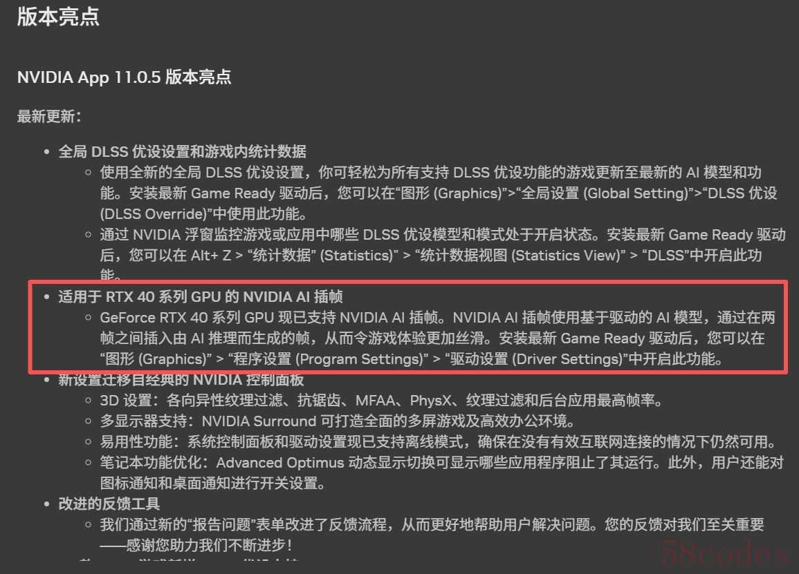 这一点是很多手持老显卡用户比较容易忽略的,每当驱动弹出有可用升级时,大家可详细看一下版本亮点中所提到的改进,如上图中的RTX 40系AI插帧功能,则建议更新驱动。如果是些无关紧要的事项,升级与否就取决于用户本身了。