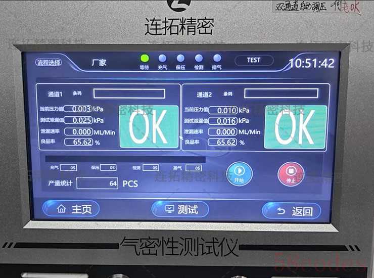 连拓精密双通道码表气密性检测仪(检测结果实拍)自成立以来,连拓精密始终深耕气密性检测领域,凭借对技术研发的执着与对品质的严苛追求,不断推出创新型气密检测设备与解决方案,从单通道到多通道,从常规产品到定制化测试,每一次技术突破都源于对行业需求的深刻洞察。此次双通道码表气密性测试技术的推出,不仅是连拓精密技术实力的又一次展现,更是对行业发展的有力奉献 —— 通过提升检测效率,严控产品品质,帮助码表生产企业降低生产成本,提高市场竞争力,推动整个精密制造行业向更高质量、更高效率的方向发展。